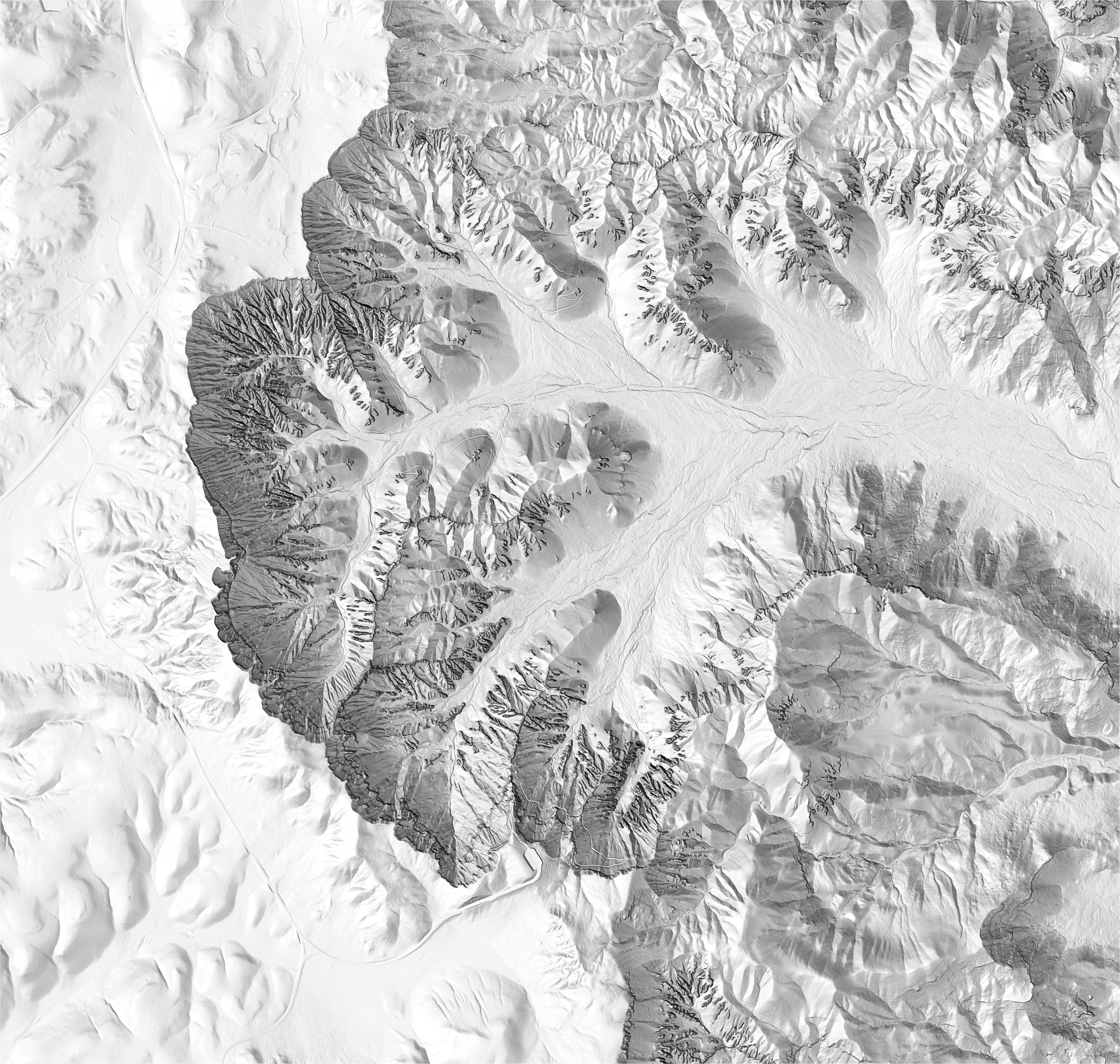 This is my second attempt to produce a custom multi-directional shaded relief, by manually combining different illumination sources. I recently introduced my approach in a previous blog post, Shadowplay, which I strongly encourage you to read before proceeding with this one here.