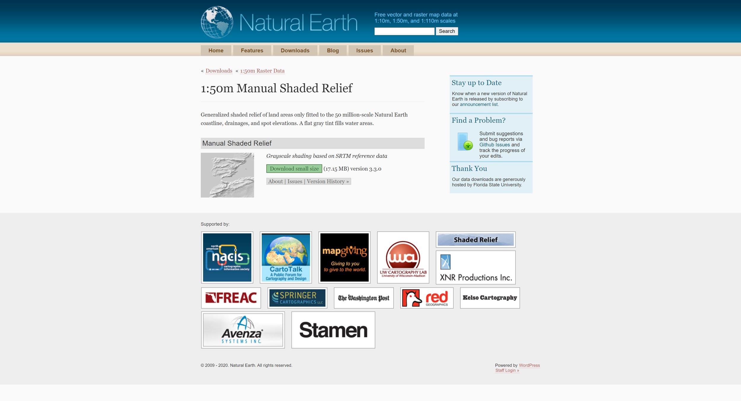 I then visited the precious Natural Earth website. From the 1:50m Raster Data collection, I downloaded the 1:50m Manual Shaded Relief, one of my most favourite global scale datasets (Picture 3).
